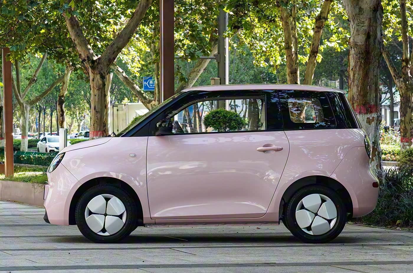 我们首先来看新车的外观设计方面,埃尚纯电动微型车的车头设计以 “圆润亲和” 为核心,同时融入新能源车型的科技特质,形成极具辨识度的视觉符号。前脸采用封闭式格栅设计,这也是纯电车型的标志性元素,不仅优化了空气动力学性能,更通过细腻的漆面质感营造出简约高级的视觉效果,彻底摆脱了传统燃油微型车的廉价感。格栅下方配备动感的黑色网格状饰板,与两侧灯组形成巧妙衔接,既增强了前脸的层次感,又为可爱的造型注入一丝运动气息。车头最引人注目的莫过于双圆形前灯组,灯腔内部采用 LED 光源,点亮后如同灵动的眼眸,配合圆润的灯组轮廓,进一步强化了车辆的萌系属性。