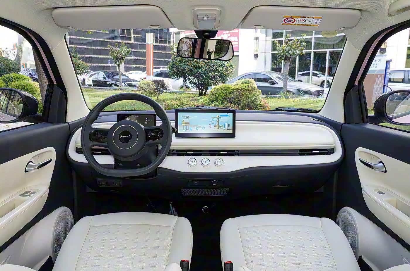 进入车内,埃尚的内饰设计让人眼前一亮,彻底颠覆了传统微型车 “简陋廉价” 的固有印象。中控台采用对称式布局,整体造型简洁大方,上方覆盖大面积软性搪塑材质,触感细腻温润,配合缝线工艺点缀,营造出远超级别的质感表现。仪表盘与中控屏的组合兼顾实用与科技感,配备 7 英寸液晶仪表与 10.25 英寸中控触控屏的双联屏设计,液晶仪表可显示车速、续航、电量等核心行车信息,界面设计简洁直观,数据读取清晰方便;中控屏支持触控操作,响应速度灵敏,内置蓝牙连接、手机互联、倒车影像等基础功能,日常使用便捷高效。空间表现是埃尚的核心优势之一,虽然定位微型车,但 1980mm 的轴距与合理的布局让车内空间利用率极高。